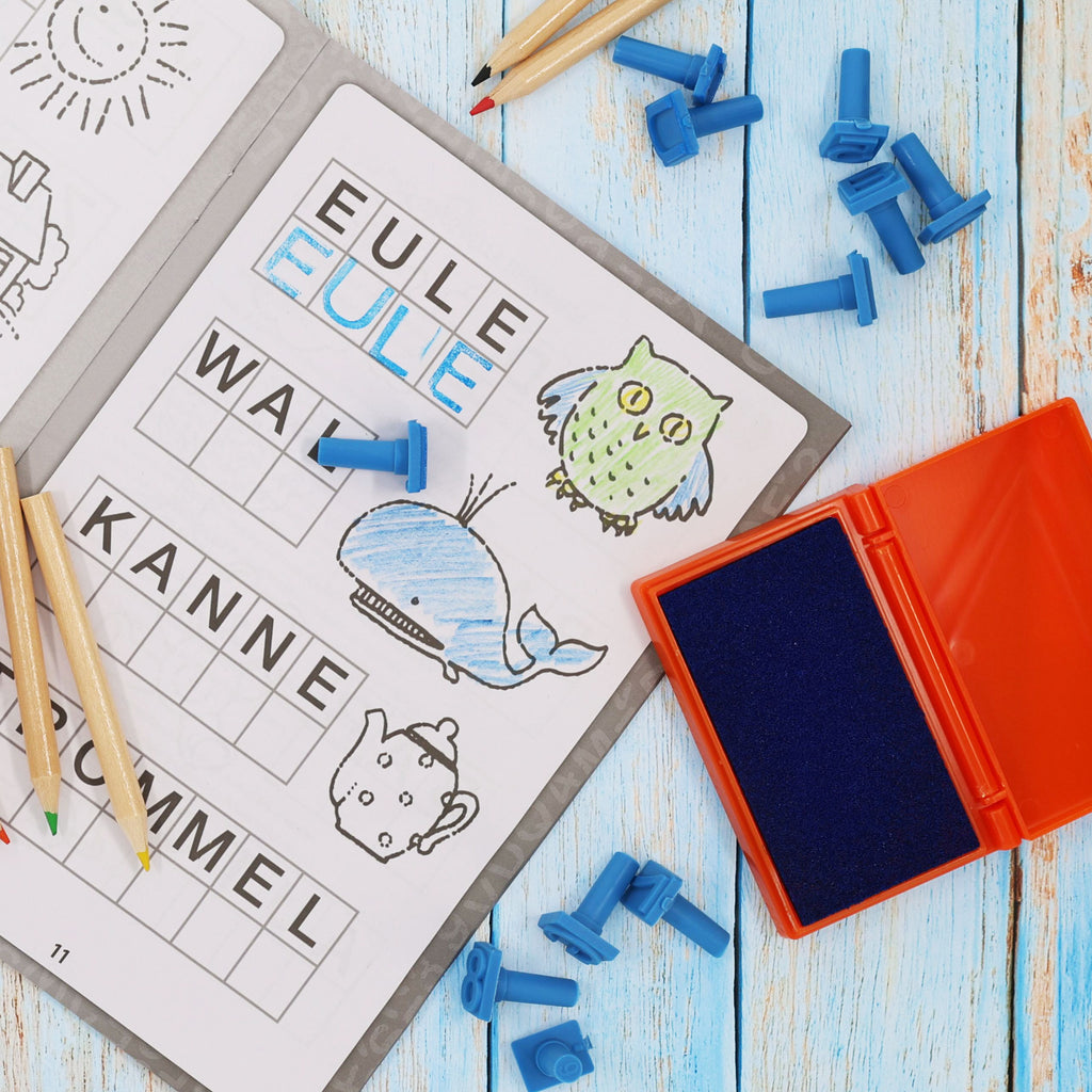 With the "My Printing Press" game from Noris, children open their own little printing press and playfully discover the world of letters, numbers and characters. Whether with the included templates or their own ideas – the possibilities are endless!