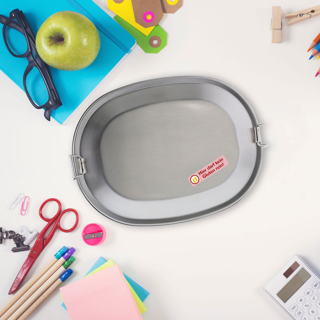 Die Aufkleber lassen sich ganz einfach auf allen wichtigen Gegenständen anbringen, die dein Kind täglich dabei hat – z. B. auf Brotdosen, Trinkflaschen, Federmäppchen, Schulmaterialien oder Dokumenten.