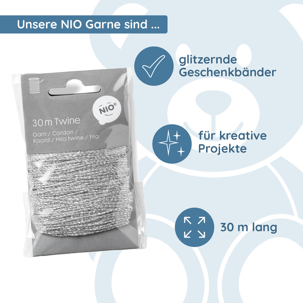 Looking for an alternative to "boring" gift ribbon? Want to give your candles, gift tags or bottles that special something? Then you should order this silver NIO glitter yarn right away! Get ready to "GLITTER"!
