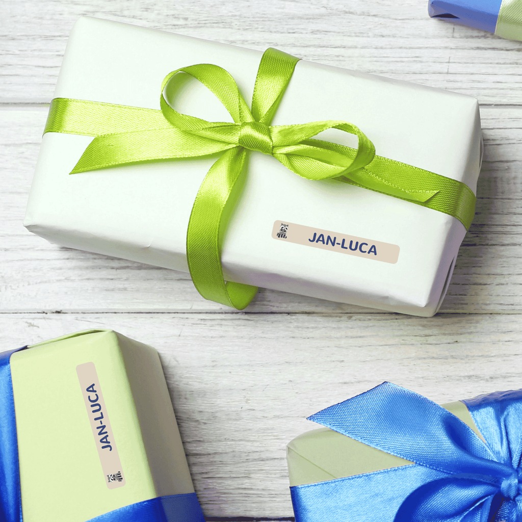 Les étiquettes autocollantes personnalisées sont résistantes au lave-vaisselle et au lave-linge, ce qui les rend particulièrement pratiques. Vous pouvez simplement les coller sur toutes les surfaces lisses et propres pour éviter les confusions. Utilisez notre outil de conception pour choisir une couleur et personnaliser le nom de votre enfant exactement selon vos souhaits.