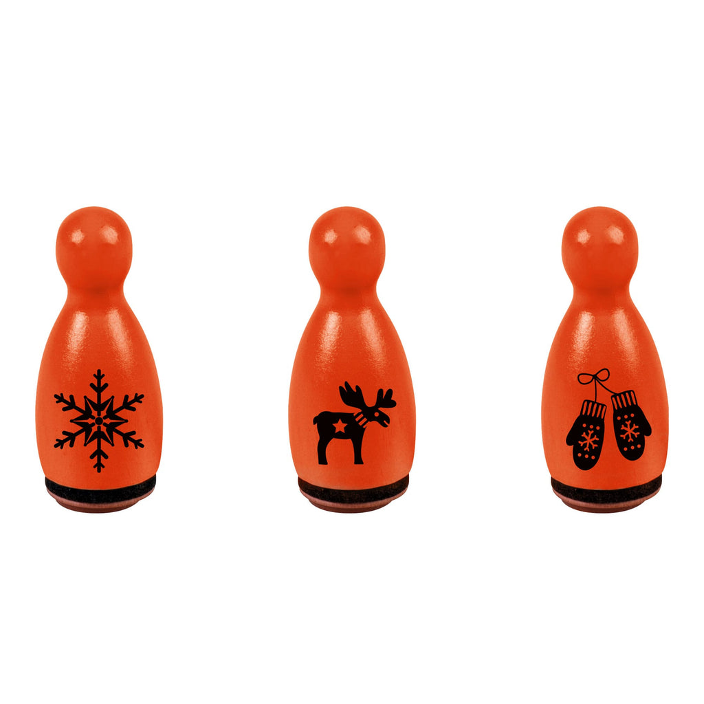 HEYDA Ensemble de tampons en bois « Hiver » – Rouge (3 pièces - Ø 12 mm)