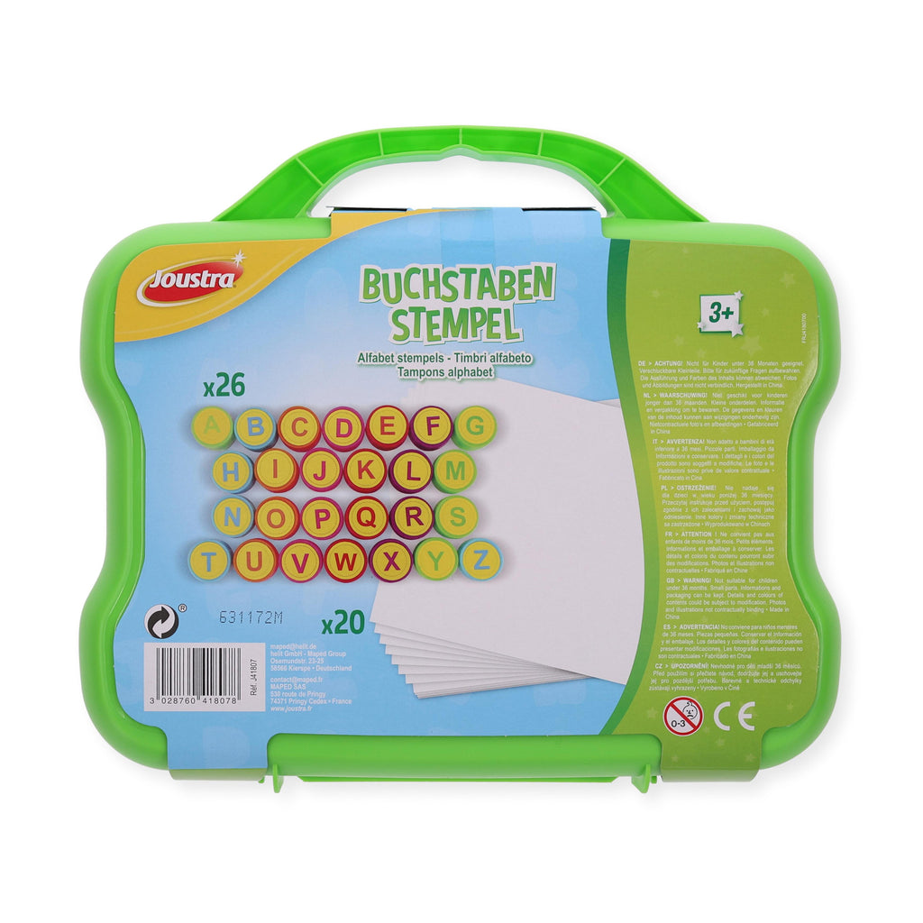 Avec cet ensemble de tampons conçu avec soin, l'apprentissage devient vraiment amusant ! Les lettres de tampon auto-encreurs dans une mallette pratique sont la combinaison parfaite entre jeu et apprentissage – idéal pour les petits découvreurs de l'ABC à partir de 3 ans.