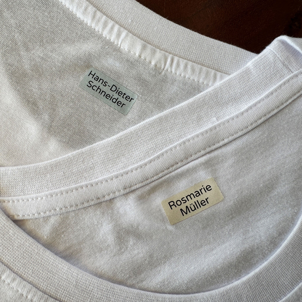 Bügeletiketten für Senioren - Ideal zur Kennzeichnung von Kleidung, Handtüchern, Bettwäsche und weiteren Textilien. Sorgen Sie für eine einfache Identifizierung und vermeiden Sie Verwechslungen!