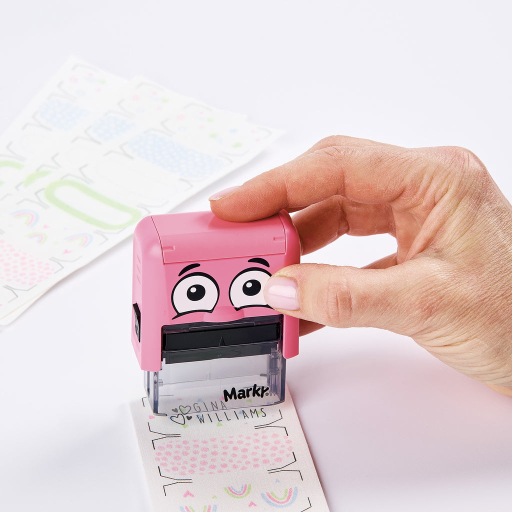 Die Aufbügeletiketten lassen sich direkt mit dem DIY MARKY Stempel personalisieren – so wird aus jedem Etikett ein individuelles Namensschild. Kein mühseliges Schreiben mit dem Stift – einfach stempeln, aufbügeln und fertig!