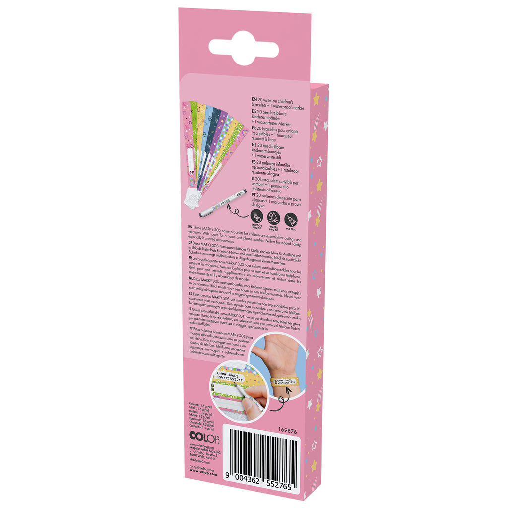 Da Kinder keine Ausweise bei sich tragen, ist es im Ernstfall oft schwer, Kontakt zur Familie herzustellen. Die MARKY SOS-Bänder bieten hier eine praktische Lösung: Auf dem Armband kann mit dem beiliegenden Permanentmarker einfach und gut lesbar eine Telefonnummer oder ein Name notiert werden. So kann jeder Helfer im Notfall schnell reagieren.