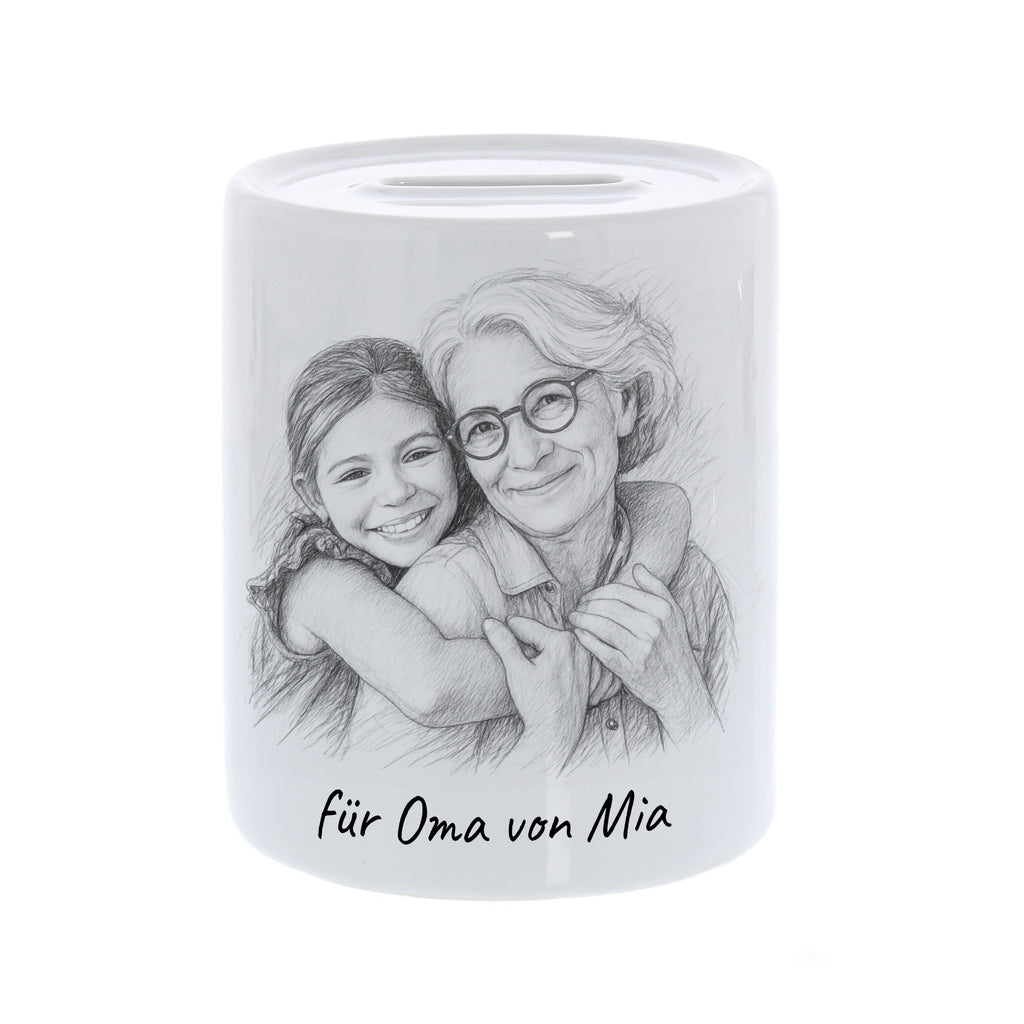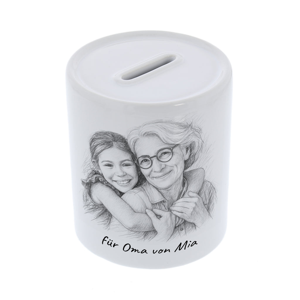 Mit dieser personalisierten Keramik-Spardose 🏺 macht Sparen richtig Spaß! Lade einfach Dein Foto hoch 📸 – wir verwandeln es für Dich in eine einzigartige Karikatur ✏️, die zusammen mit Deinem Wunschtext 💬 auf die Spardose gedruckt wird. So entsteht ein witziges, persönliches Unikat, das garantiert für gute Laune sorgt!